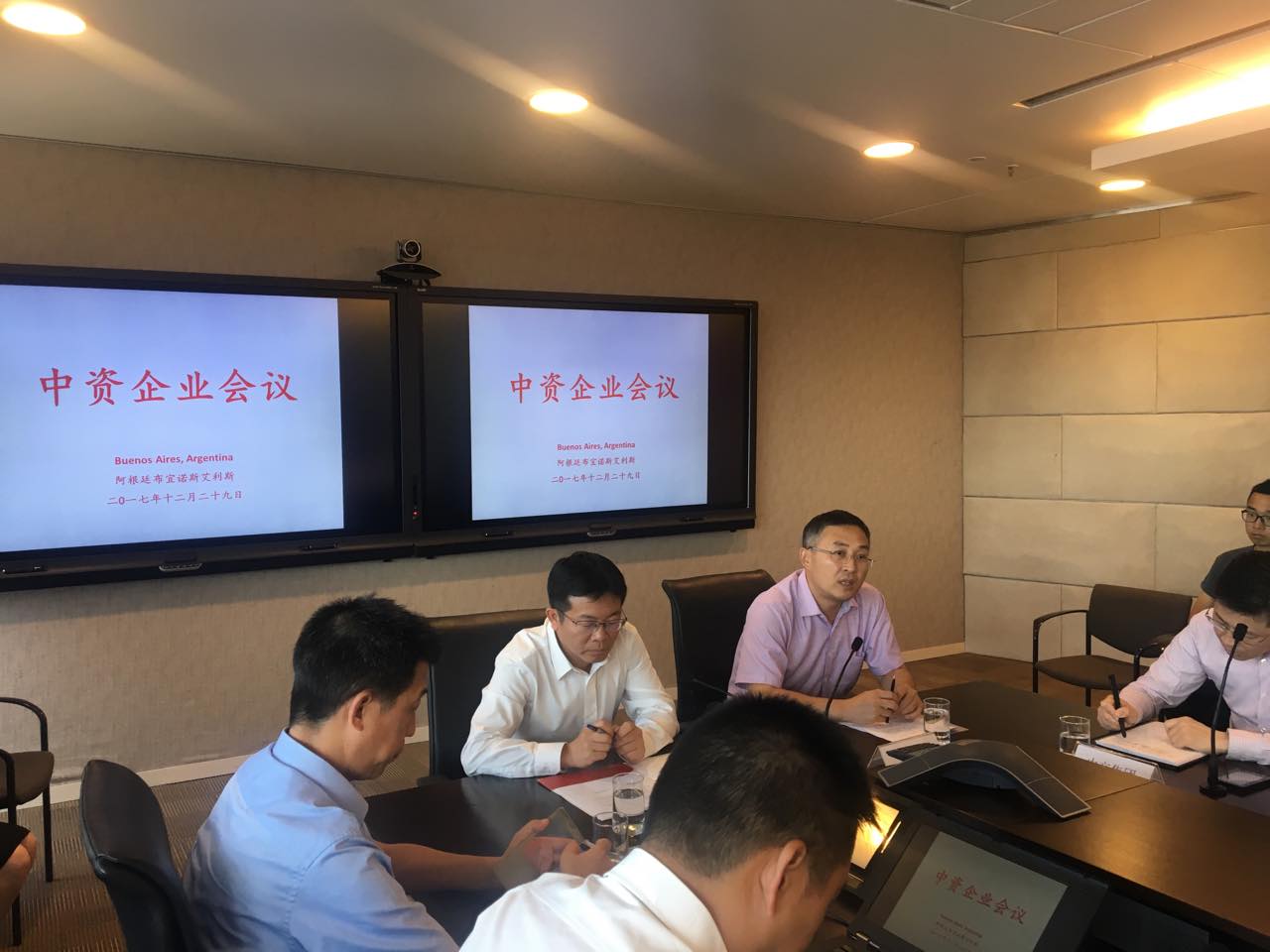 2017年12月29日,翟承玉参赞主持召开了阿根廷中资企业会议。会上,翟承玉参赞就在阿中资企业党建工作、安全生产、规范企业海外经营等问题提出了具体要求。戚羽泽随员、许天舒随员陪同。