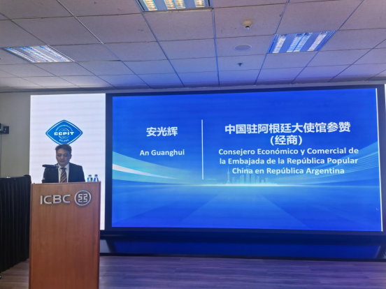 11月28日,由北京市贸促会、阿根廷亚太商会、阿根廷战略对话基金会、工银基金会联合举办的北京—阿根廷经贸合作推介洽谈会在阿根廷布宜诺斯艾利斯市成功举行。安光辉参赞(经商)出席洽谈会并致辞。